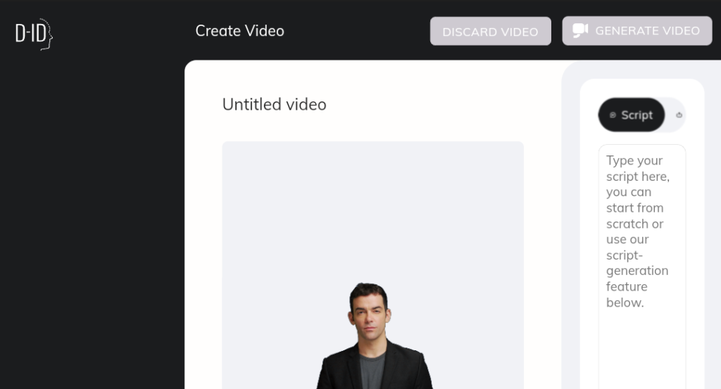 अब Ai से वीडियो बनाने के लिए, फिर से गूगल में सर्च करेंगे। did.io गूगल में जैसे इसको मैने सर्च किया तो, मैं डायरेक्ट डीआईडी डॉट आईओ के वेबसाइट पर पहुंच गया। तो वहां पर मुझे इसका इंटरफ़ेस कुछ इस तरह से देखने को मिला।