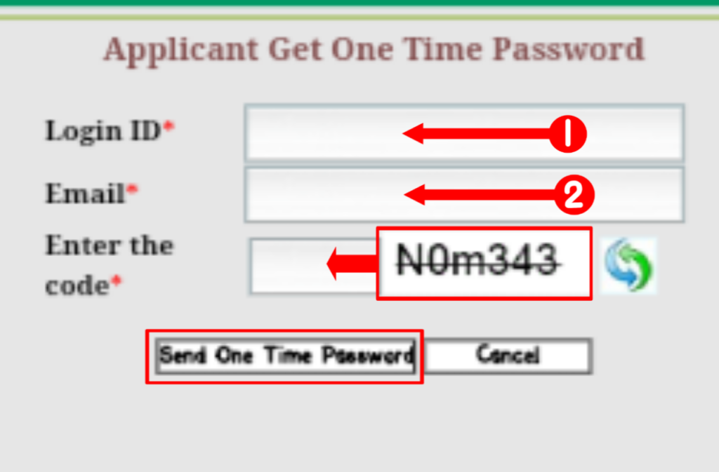 password generate karne ke liye aapko Applicant Get One Time Password per aapko click karna hai/ click karne ke bad aapke samne yah page show hoga